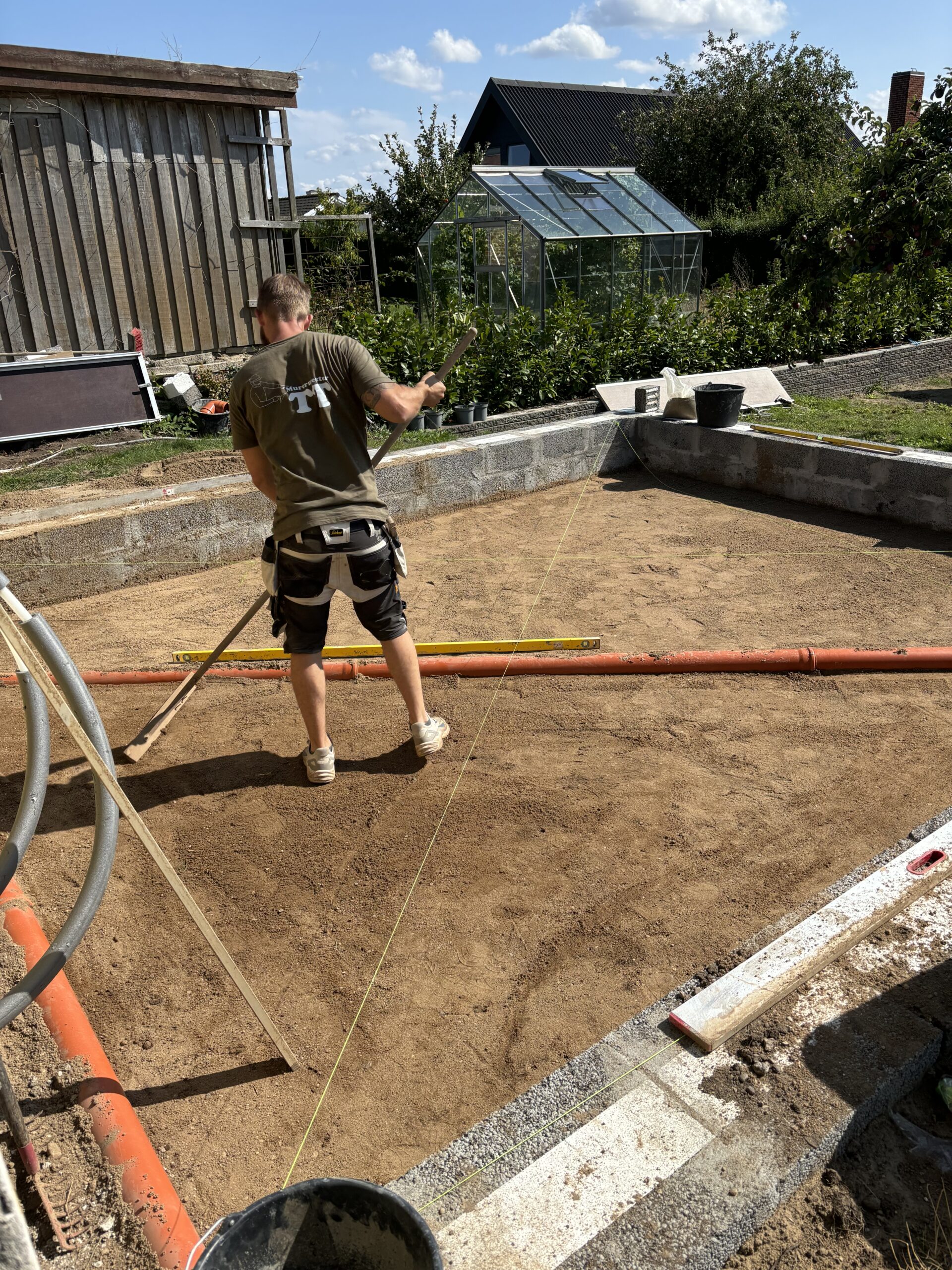 Murermester der klargør inden isolering, gulvvarme og beton